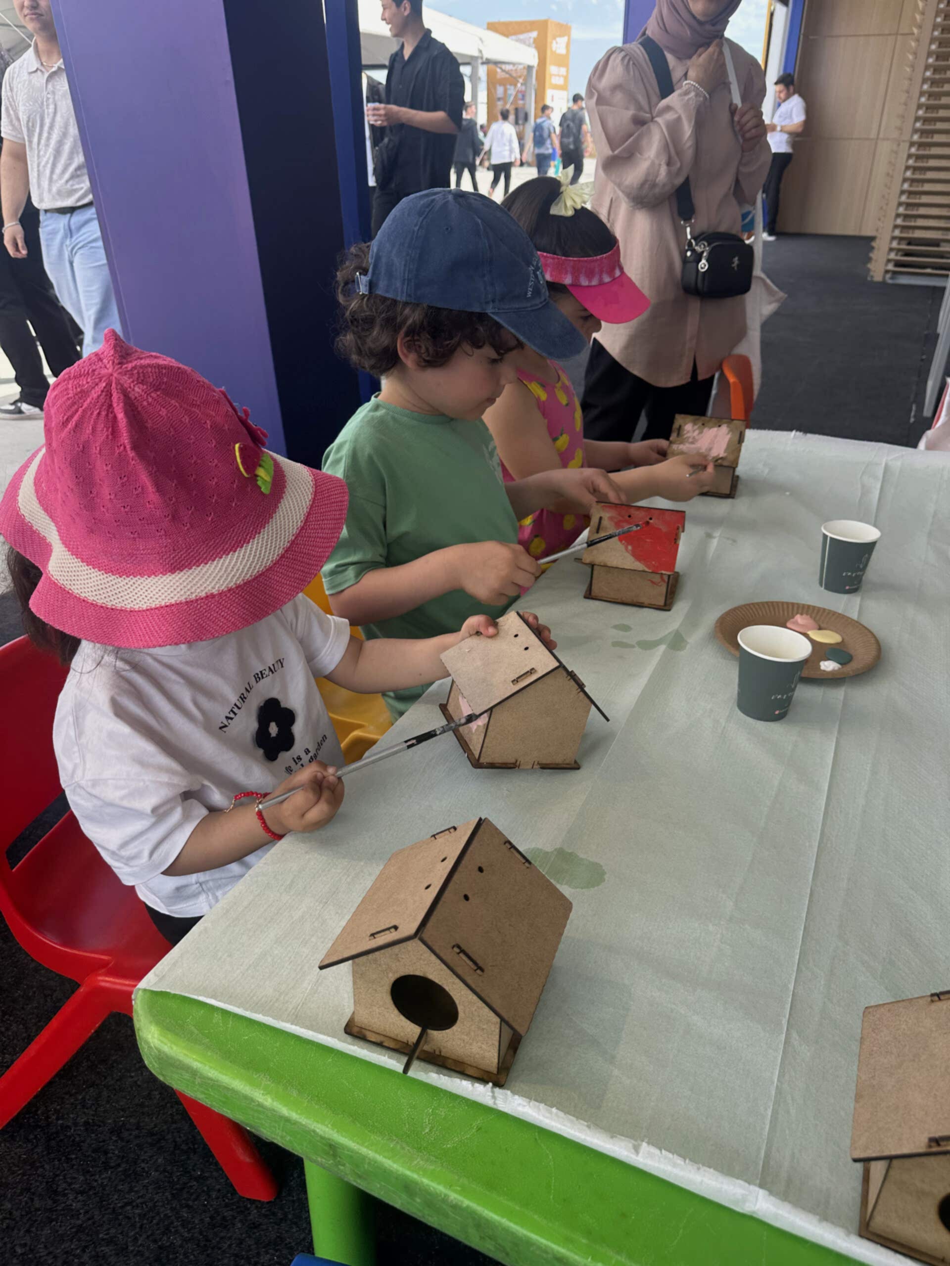 Minik katılımcılar, rengarenk boyalarla kendi kuş evlerini tasarlayarak hem yaratıcılıklarını ifade ettiler hem de doğa dostu bir farkındalık kazandılar.